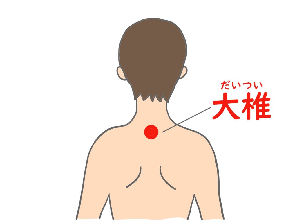 そんな時に大事なのが、うなじの下、首と肩の付け根あたりを冷やさないことです。大椎というツボの場所になります。