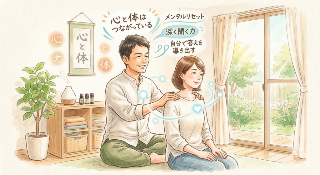 私自身、メンタルトレーニングを学び始めて5年になります。その中で痛感したのは、心と体は切り離せない一つのものだということです。施術で体を整えることは、同時に「心の糸」を解きほぐすことでもあるのだと、改めて実感しています。